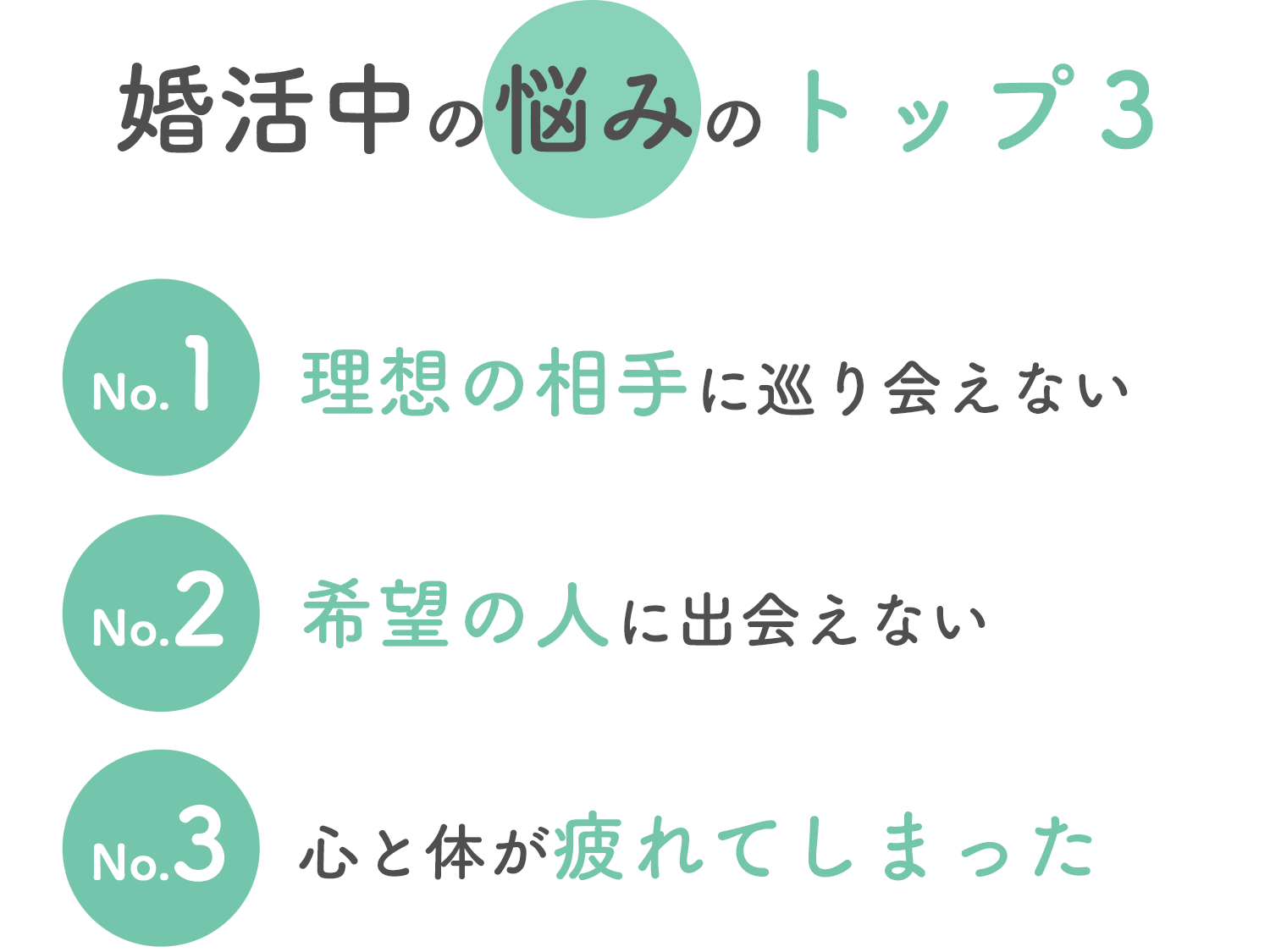 婚活を頑張るとこのトップ3のような悩みが出てきます。